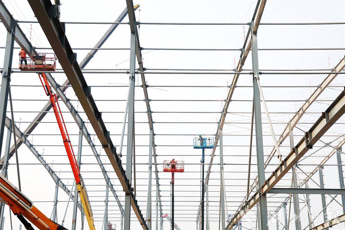 12月11日,在宜昌市猇亭区远景动力智能锂电池生产基地施工现场,工人们正在24米高空安装标准化厂房结构。目前,中建二局所属600多家施工公司正在努力跟踪施工进度,使公司尽快投产并取得成果。该项目规划年产能40GWh,据悉将覆盖包括电极、电芯、电池组在内的锂电池全产业链,生产700Ah以上最新一代储能电池产品。投产后,预计年产值将突破100亿元。今年10月,该项目从签约到开工仅用18天就竣工,再次创下大型项目建设“宜昌速度”新纪录。在。 (远景网络黄翔供图)12月11日,在宜昌市猇亭区远景动力智能锂电池生产基地施工现场,工人们正在24米高空安装标准化厂房结构。 12月11日,在宜昌市猇亭区远景动力智能锂电池生产基地施工现场,工人们正在24米高空安装标准化厂房结构。 12月11日,在宜昌市猇亭区远景动力智能锂电池生产基地施工现场,工人们正在24米高空安装标准化厂房结构。